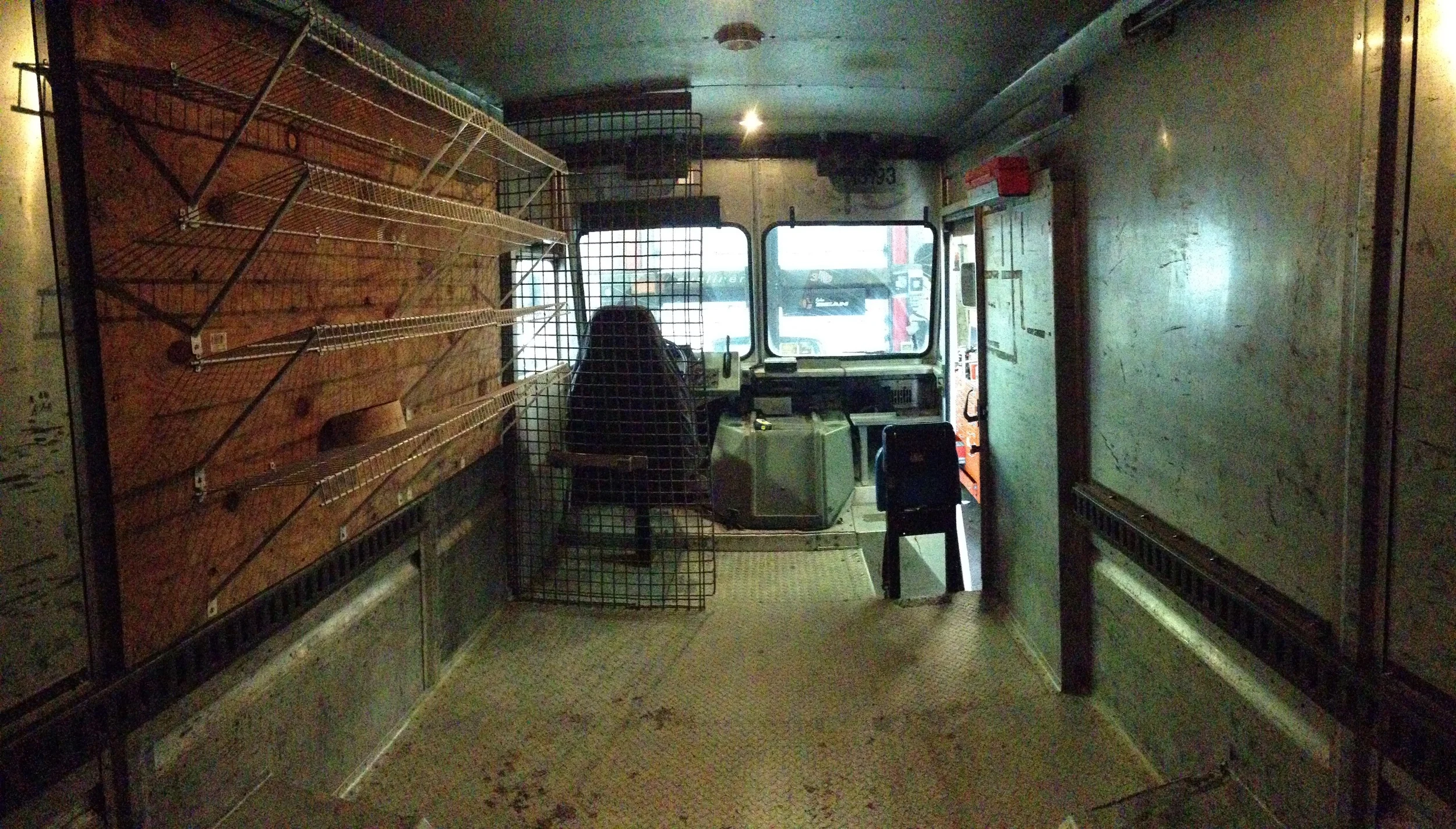 Now that everything is off, it's time to put some stuff on. I took my first trip to a junkyard to find some odds and ends, and scope out the glass situation. I found one place with one step-van; enough for me!
