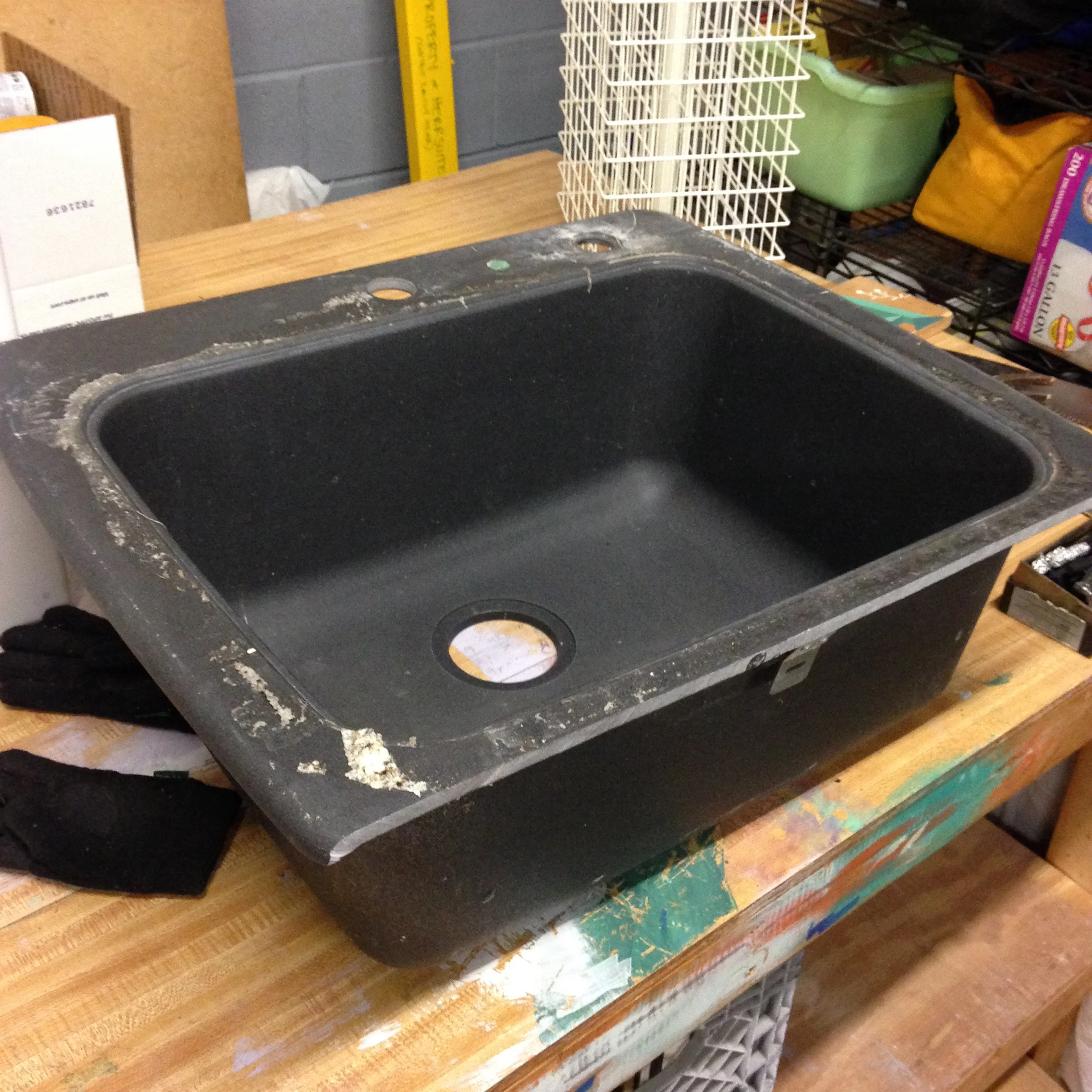 Still on the bright side, I bought a sink!! It's big and deep and was TEN DOLLARS. All the sinks I'd been looking at were $50-$250, so I win. The stuff around the top is from where someone had it undermounted - some leftover adhesive and granite chips. I'm honestly thinking about undermounting it too, so no harm no foul. With my gravity-water plan, I don't need the faucet stuff, so just a big basin is exactly what I need.