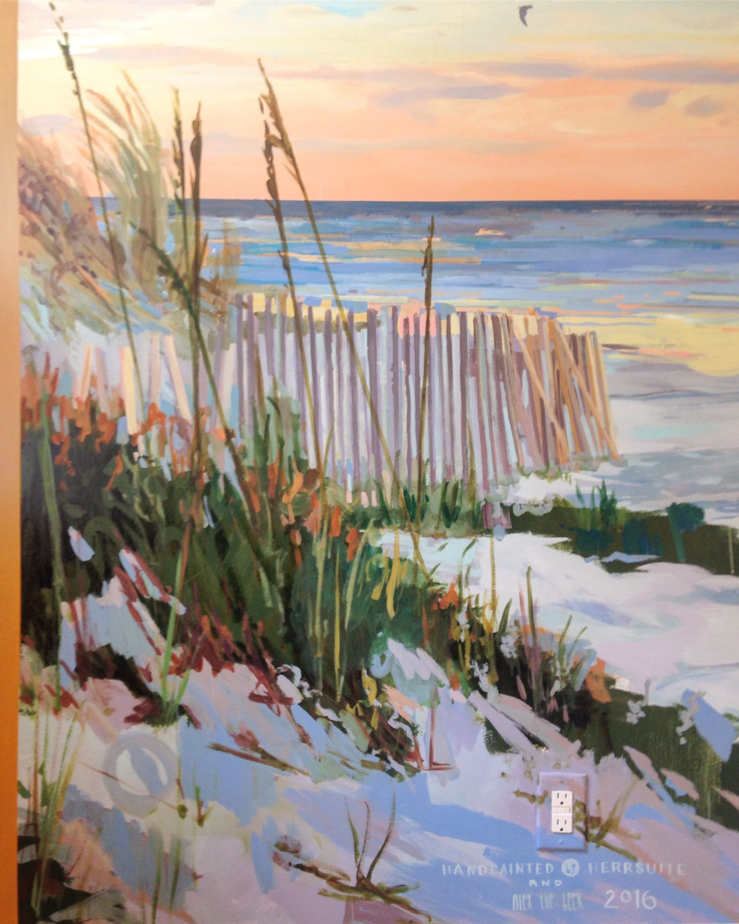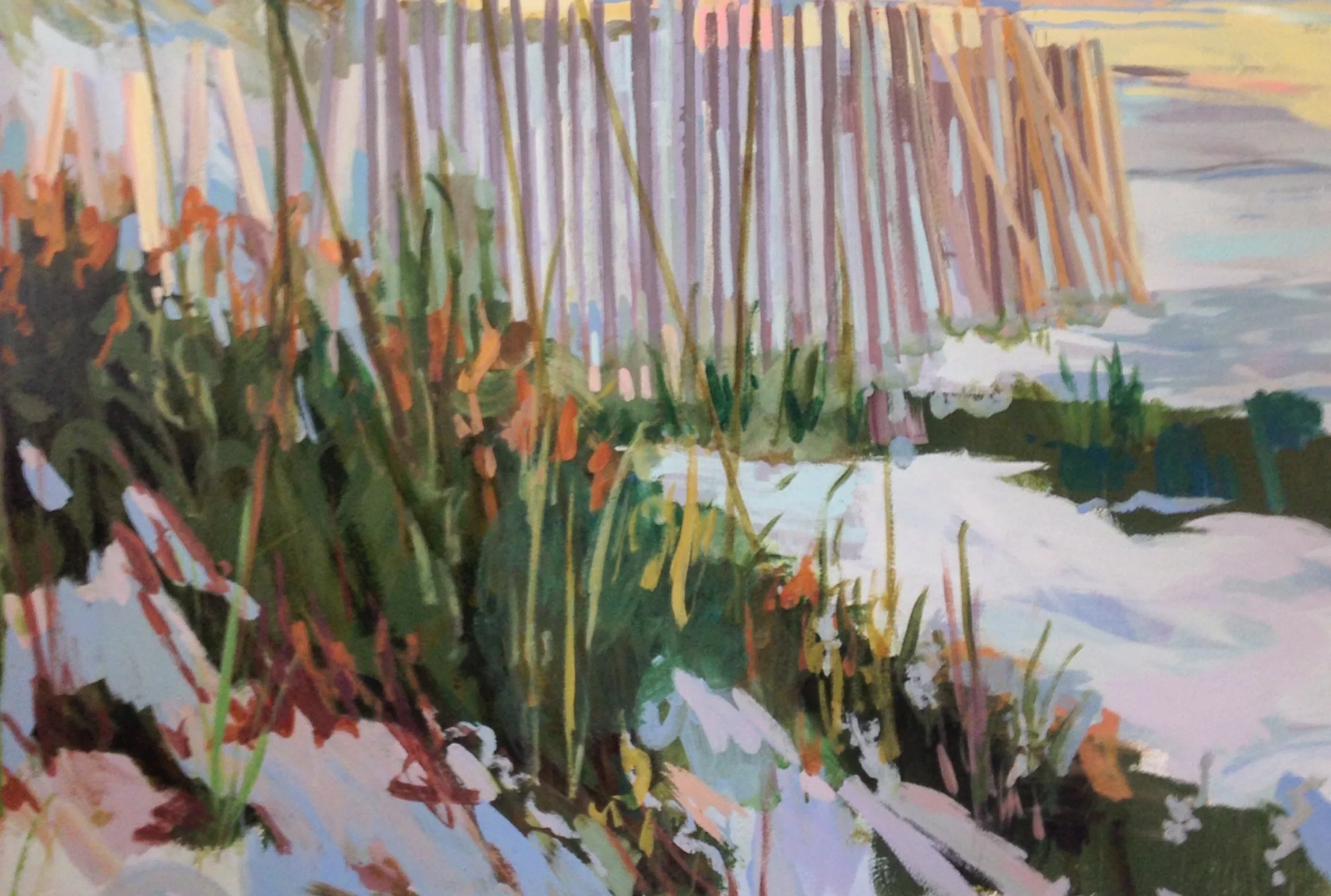 This colorful trompe l'oeil style piece was informed by golden Virginia beaches at sunrise.